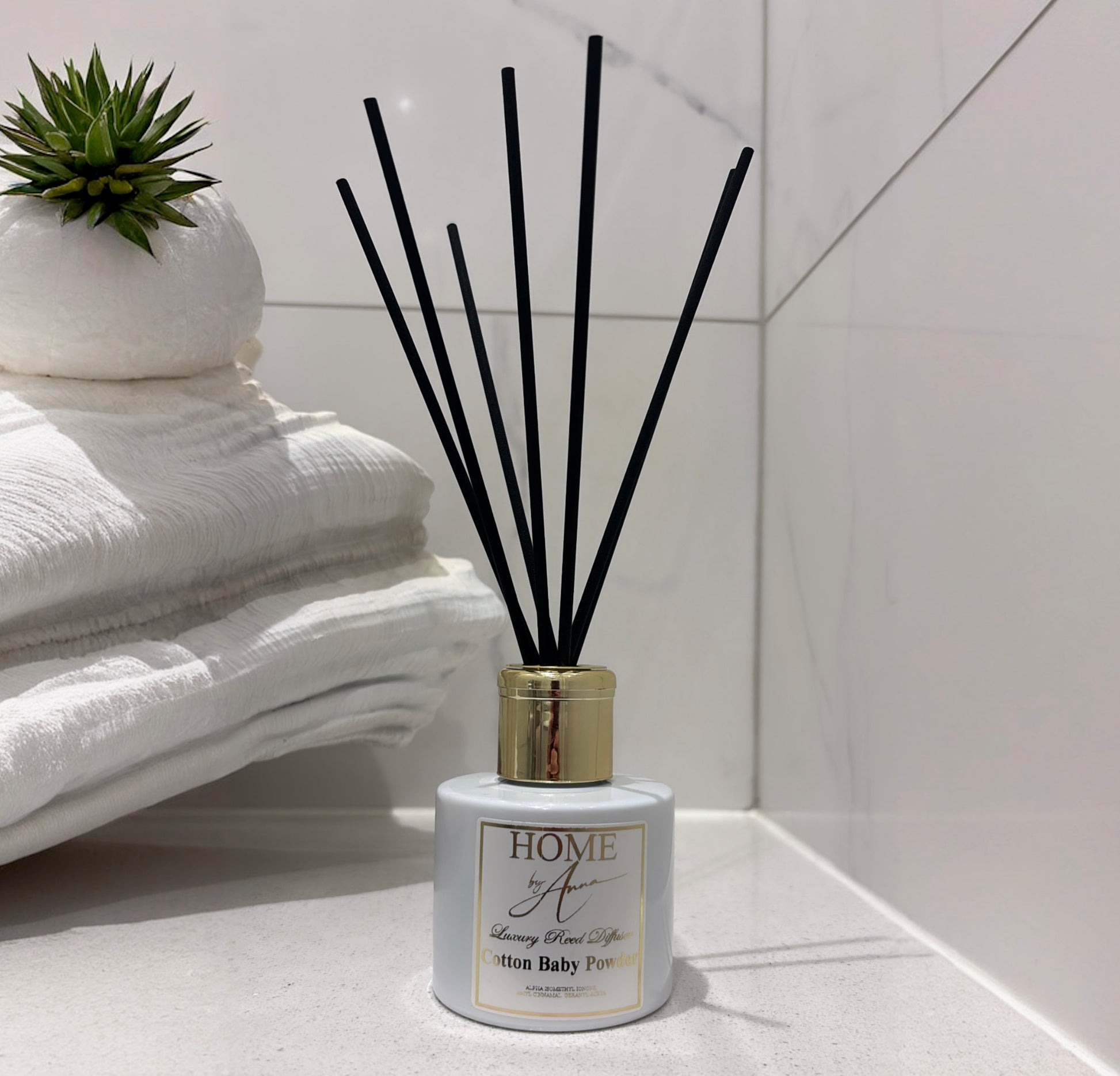 Elevate your home with the Home By Anna Scented Luxury Reed Diffusers. This elegant piece features gold accents, adding a touch of sophistication. Place